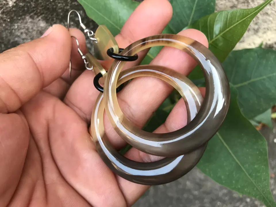 Genuine Buffalo Horn Matisse Earrings Women Long Statement Animal Nautical Style Fashion Jewelry Polished Natural Souvenir
