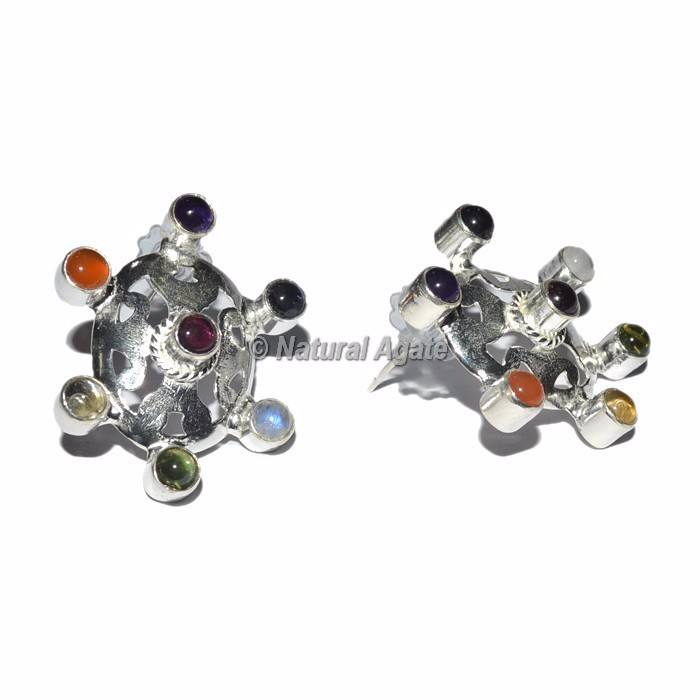 Genuine Chakra Product Silver Seven Chakra Flower Cuff Earrings for Weddings and Parties Perfect As a Gift