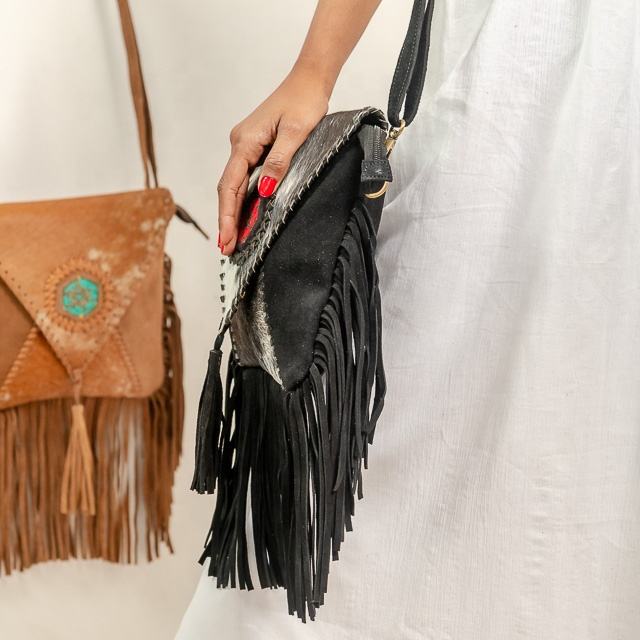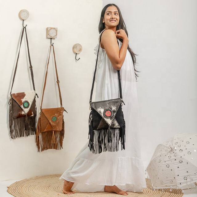 Genuine Cow Hide Leather High Quality Daily Use Small Size Patch Work Leather Sling Bag Hair On Leather Cross Body Sling Bag