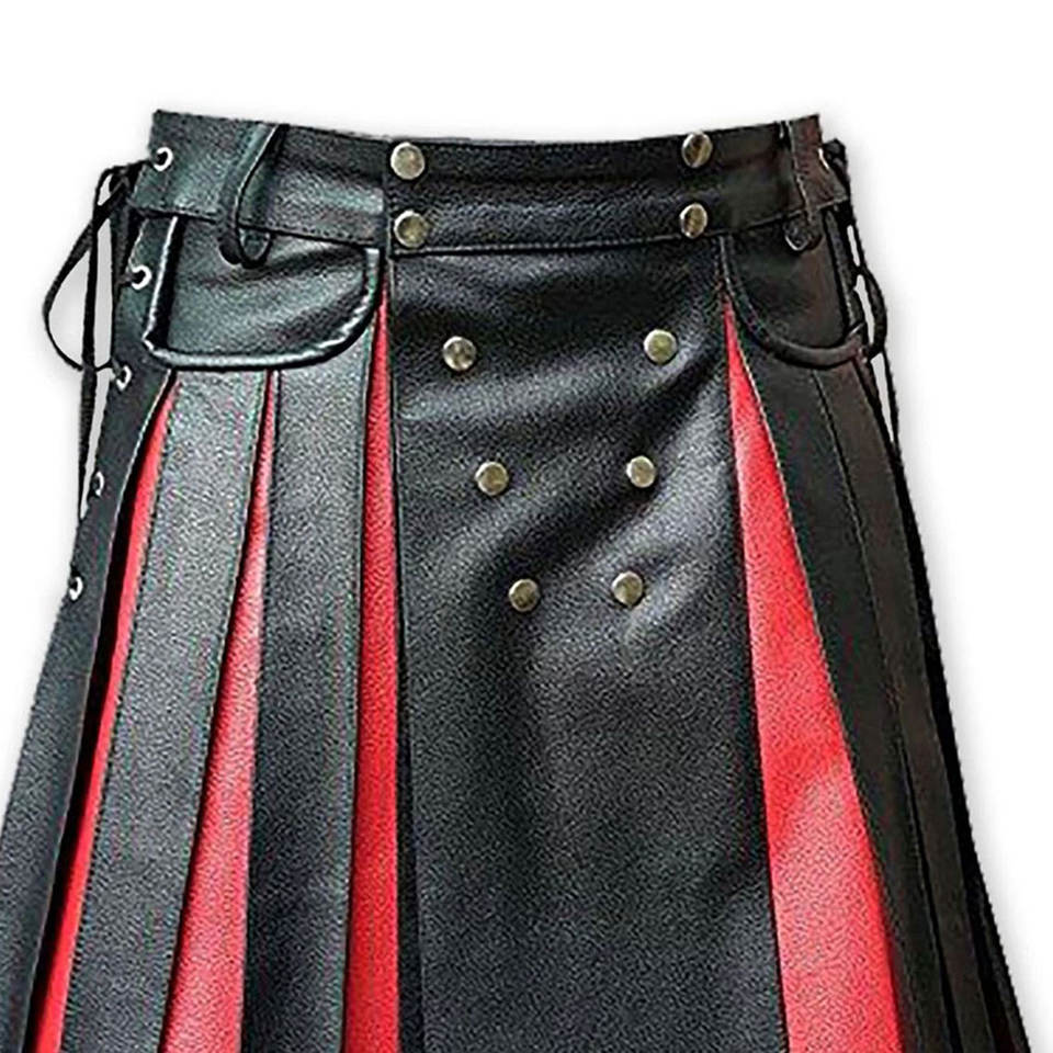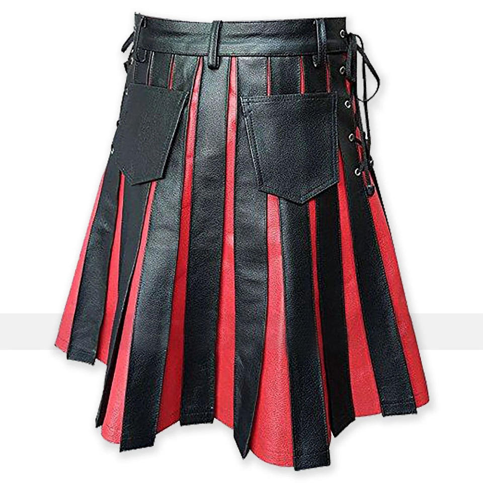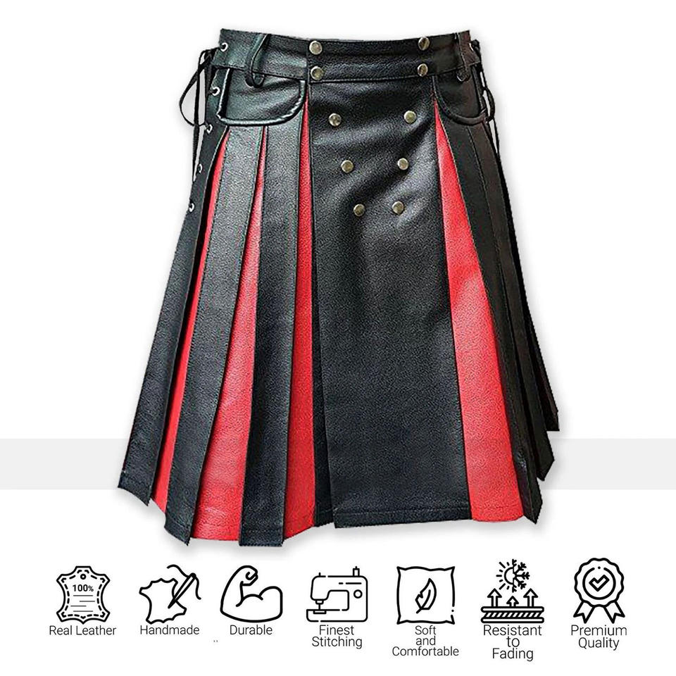 Genuine Cow Leather Scottish Kilt Pleated Style LARP Men's Red & Black 2026