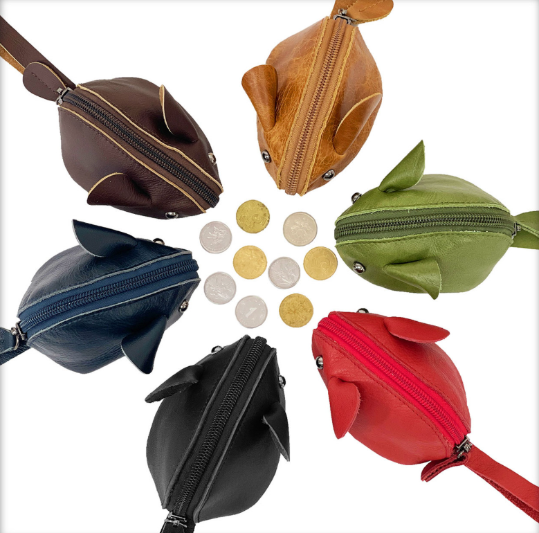 Genuine Cow Leather Unisex Key Holder Wrist Wallet Crazy Horse Cowhide Zipper Unusual Mouse Shape Coin Purse for Men