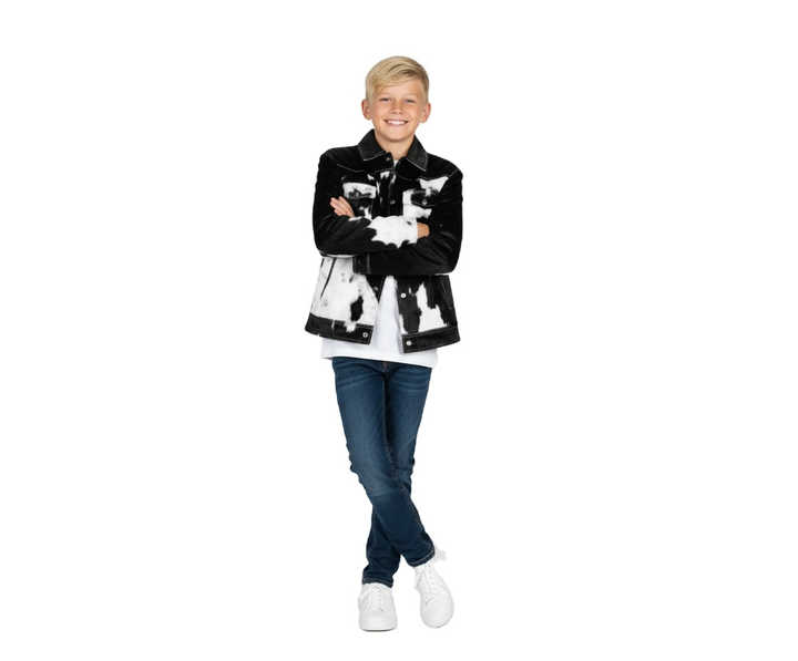 Genuine Cowhide Fur Leather Jacket for Men Waterproof with Stand Collar and Front Logo Decoration for Winter