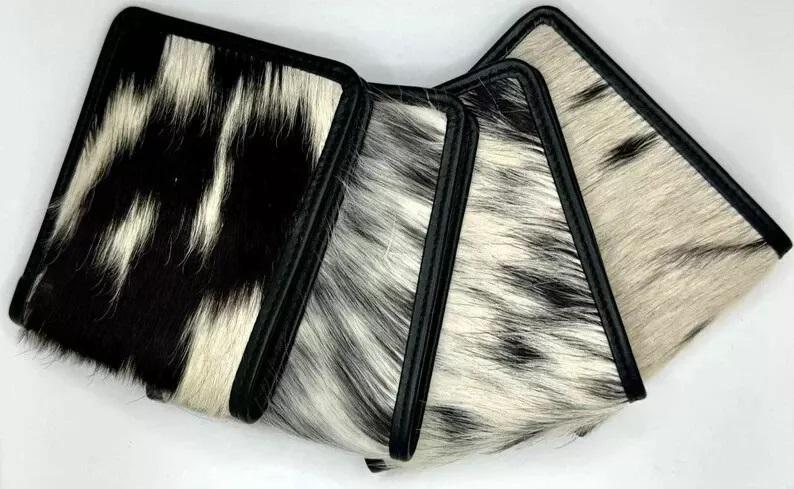 Genuine Cowhide Hair Leather Luxury Slim Wallet Card Holder Mini Folding Men's Purse for Casual Use Lipstick Bag