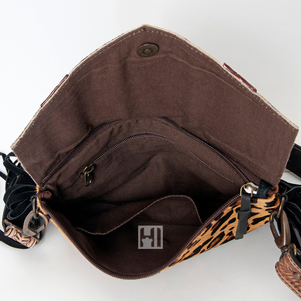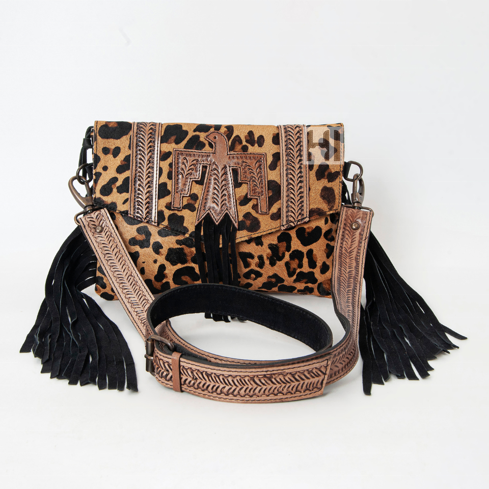 Genuine Cowhide Hand Tooled Leather Women's Designer Purse Western Fashion Leopard Print Tooled Shoulder Zipper Autumn Dress