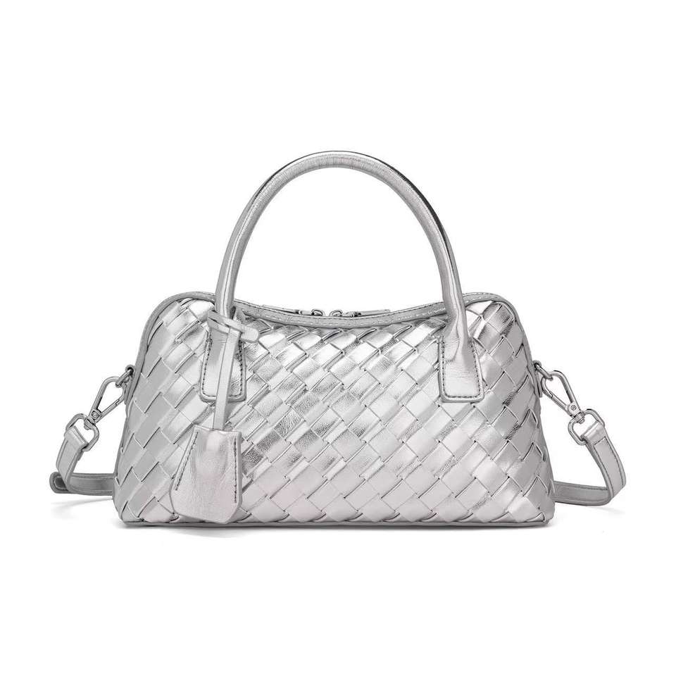 Genuine Cowhide Leather Woven Waterproof Foldable Lightweight Women's Elegant Casual Crossbody Shoulder Clutch Handbag Polyester