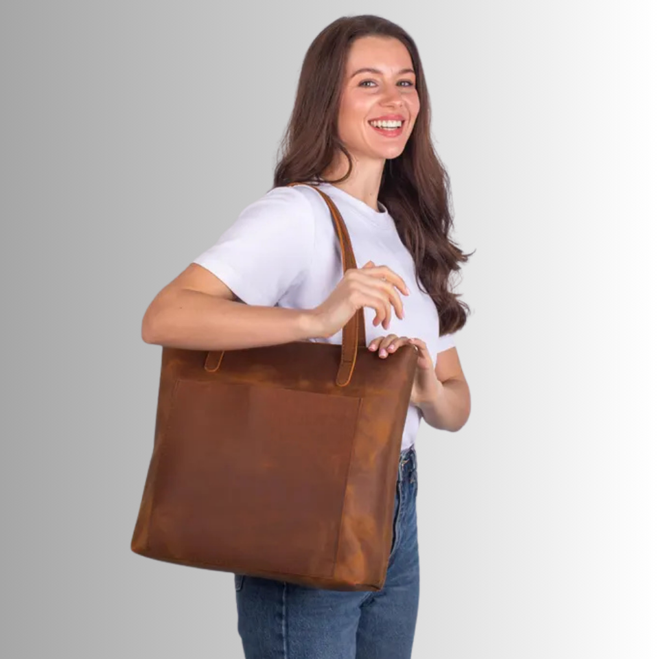 Genuine Crazy Horse Leather Handbag Vintage Tote Bag for Women Strong & Stylish Ideal for Work Shopping Travel & Gifting