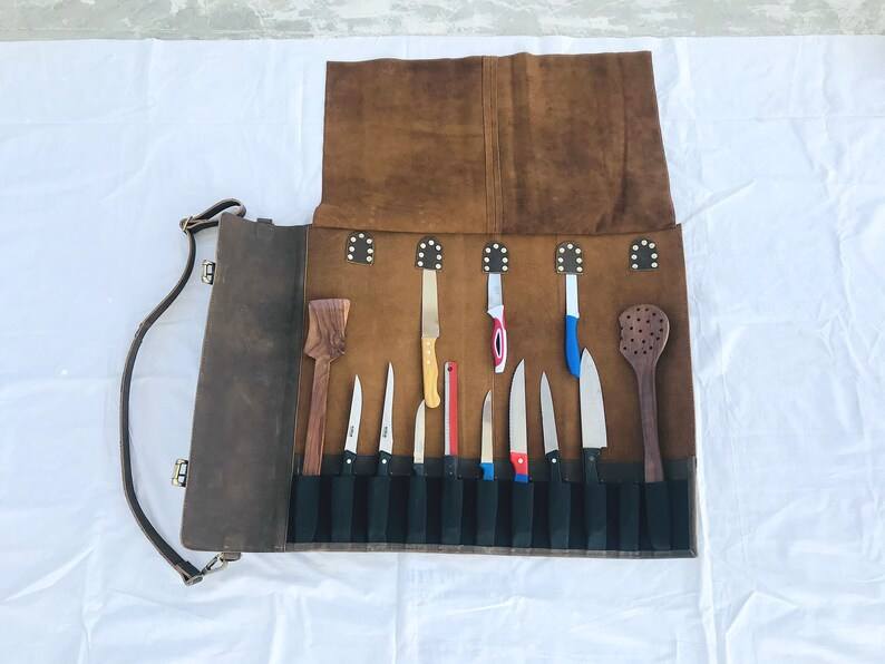 Genuine Custom Leather Knife Roll Storage Organizer Bag Handmade Leather Knife Cases Holders OEM Supported Model LKR-0095