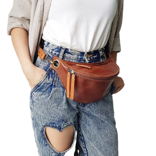 Product name:Genuine Dark Brown Leather Bum Bag Pouch Crossbody Belt sling Bag