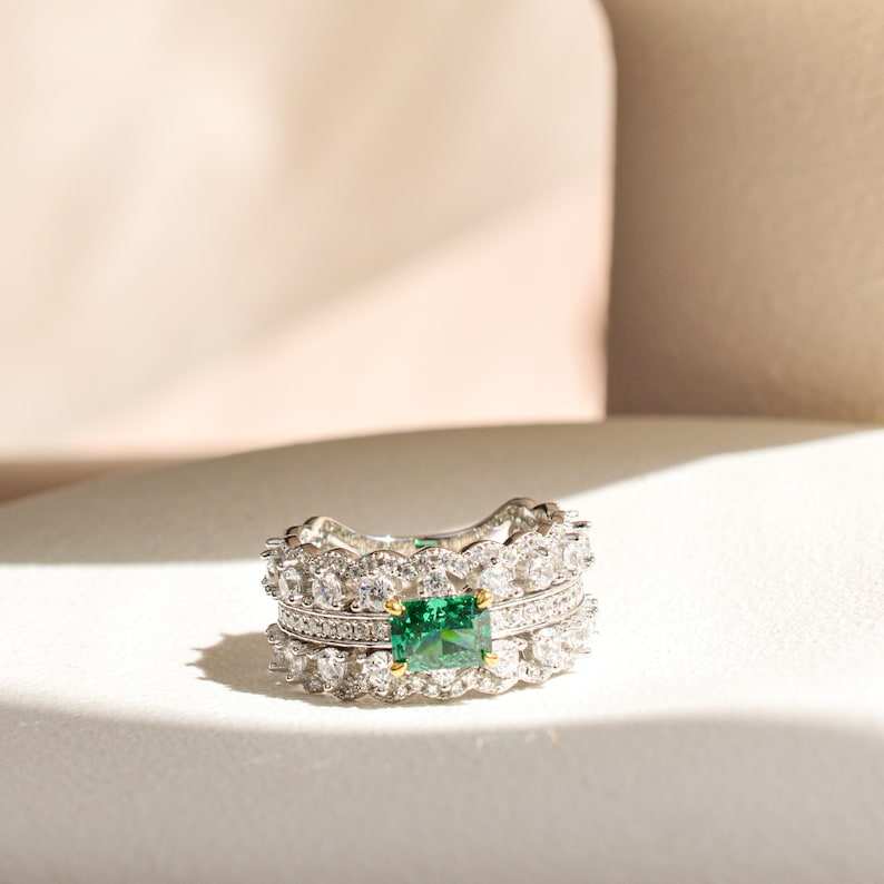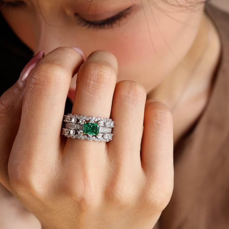 Genuine Emerald Religious Statement Ring Tiny Zircon 925 Sterling Silver High Quality IGI Certified Vintage Engagement Cocktail