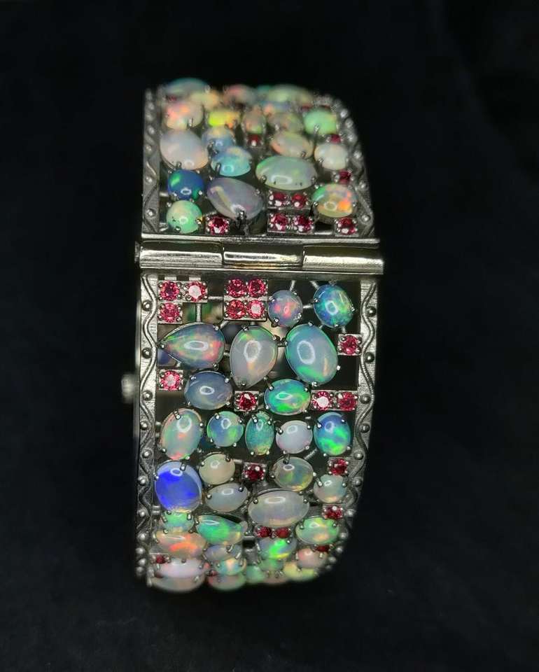 Genuine Ethiopian Opal Rare Bangle Crafted Authentic Opal Displaying
