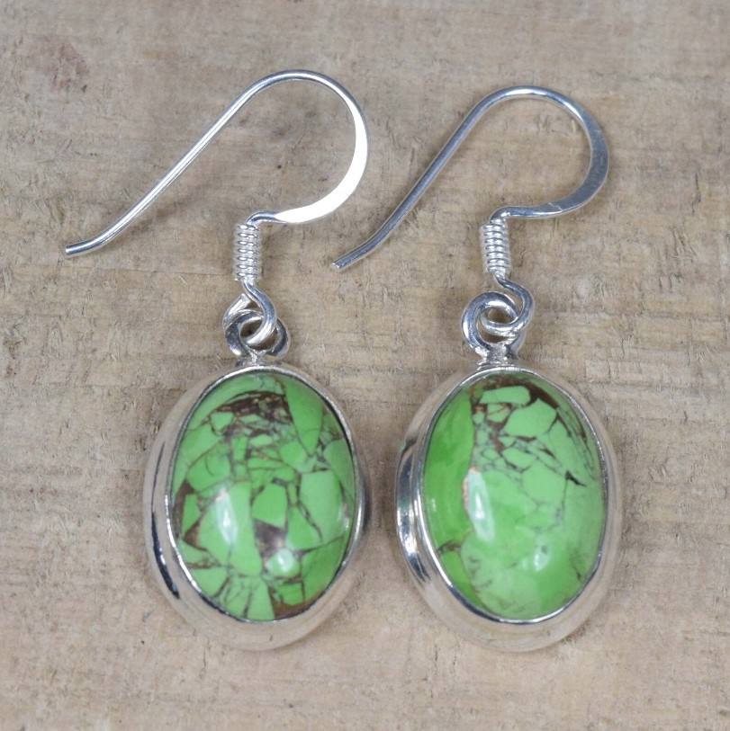 Product Name:Natural Green Turquoise Gemstone Silver Earrings