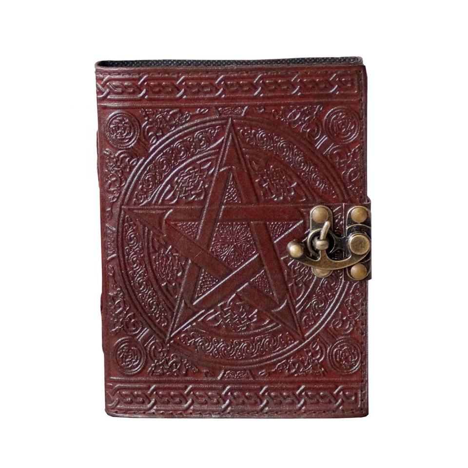 Genuine Handmade Black Pentagram Design Embossed Notebook & Sketchbook Leather Journal Book of Shadows White Paper Diary