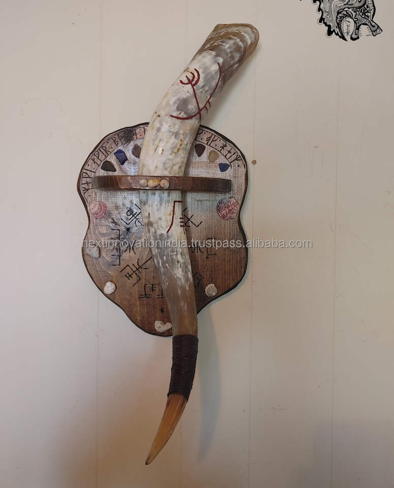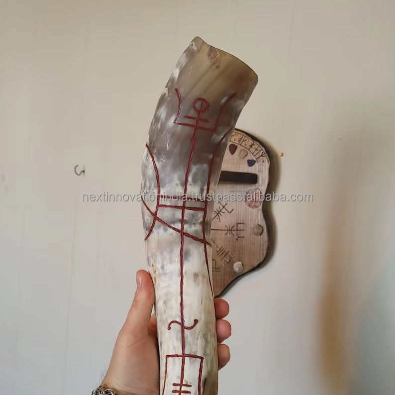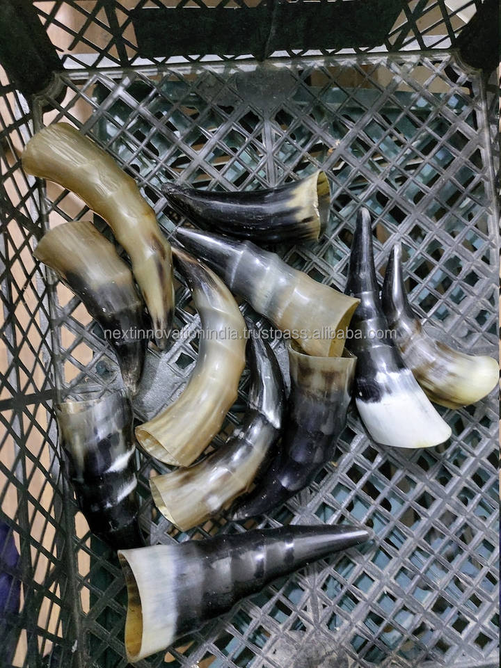 Genuine Horn Drinking Cup Mug Polished with Leather Holder for Wedding or Home Use