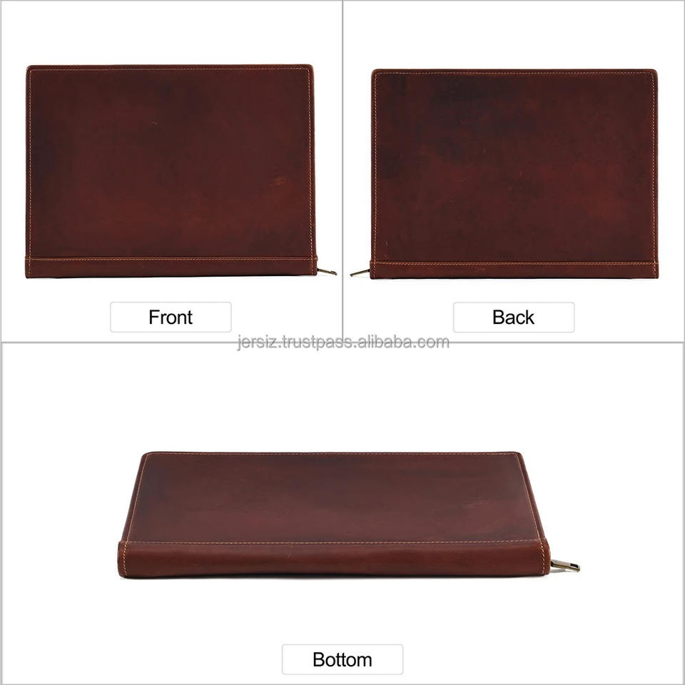 Genuine Leather A4 File Folder Button Bow Rivet Flower Office Business Portfolio 12.9 Document Card Holder