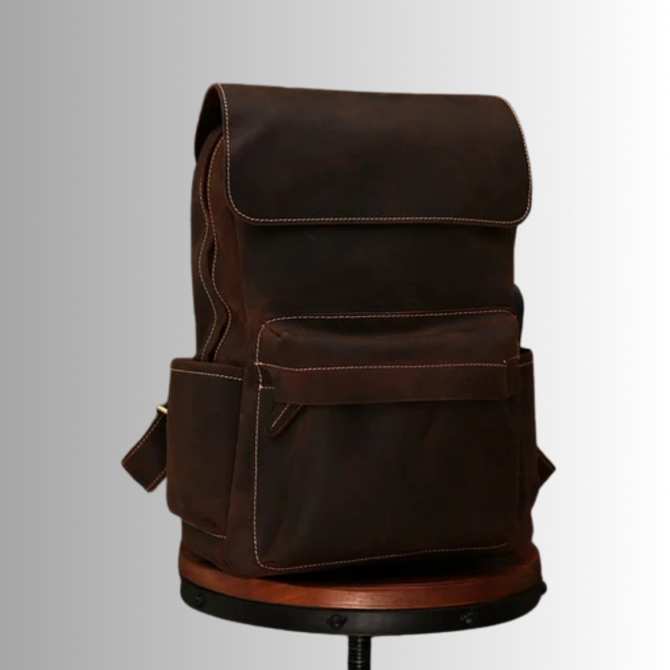 Genuine Leather Backpack Canvas Lining Zipper Handmade Durable Custom Logo Laptop Bag for School Travel Office Vintage Style