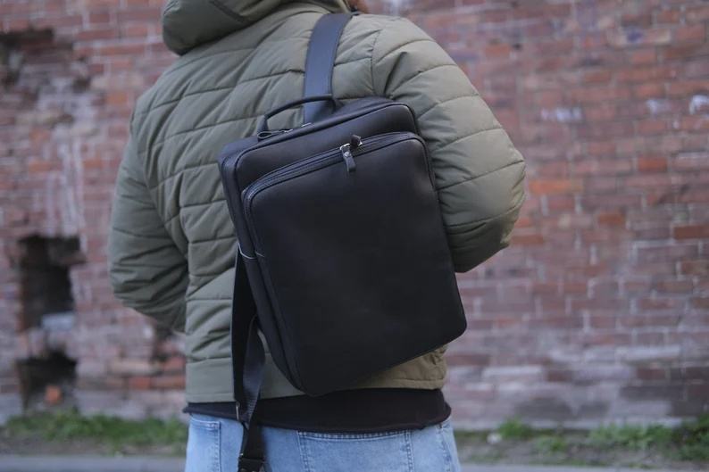 Genuine Leather Backpack Retro Hiking Unisex Leather Rucksack with Laptop Tablet and Phone Storage Personalized Backpack