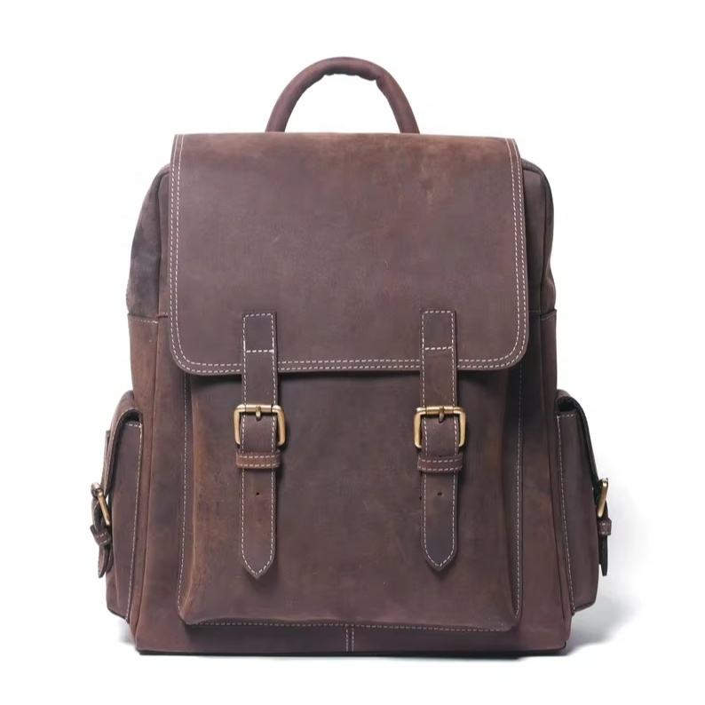 Genuine Leather Backpack Retro Hiking Unisex Leather Rucksack with Laptop Tablet and Phone Storage Personalized Backpack