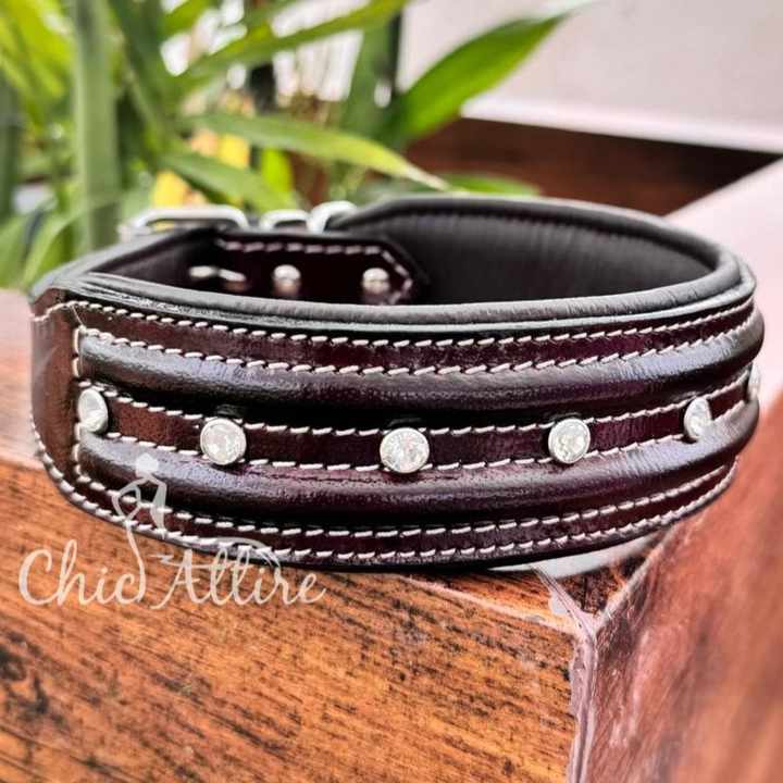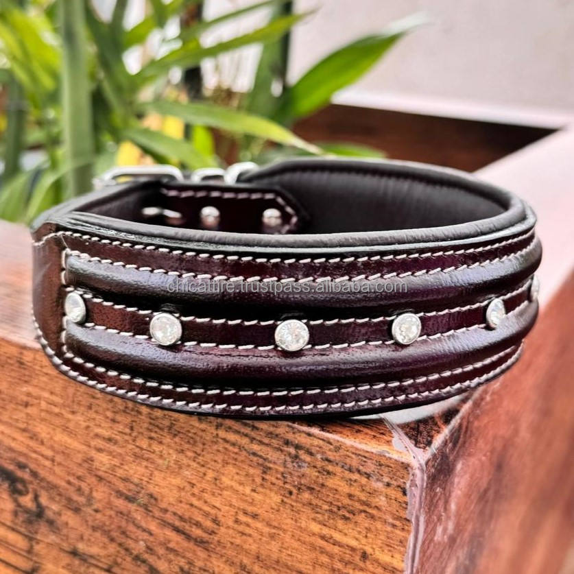 Genuine Leather Braided Studded Brown Dog Collar Adjustable Soft Padding Luxury Dog Collar Thick Western Real Cowhide Dog Collar