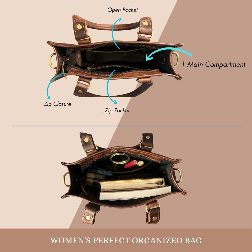Genuine Leather Brown Crossbody Tote for Women Lightweight Durable Satchel with Zipper Closure Dual Straps