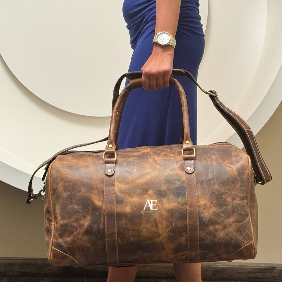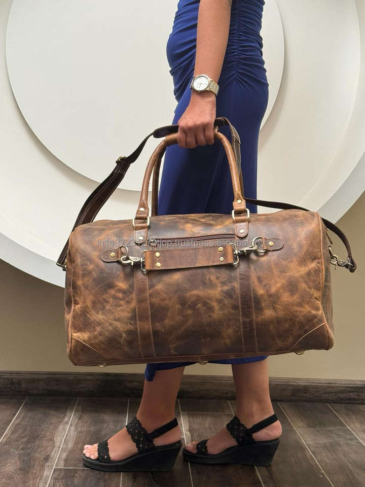 Genuine Leather Brown Large Capacity Vintage Luggage Travel Luggage Bag Weekend Trip Shoulder Luggage Bag