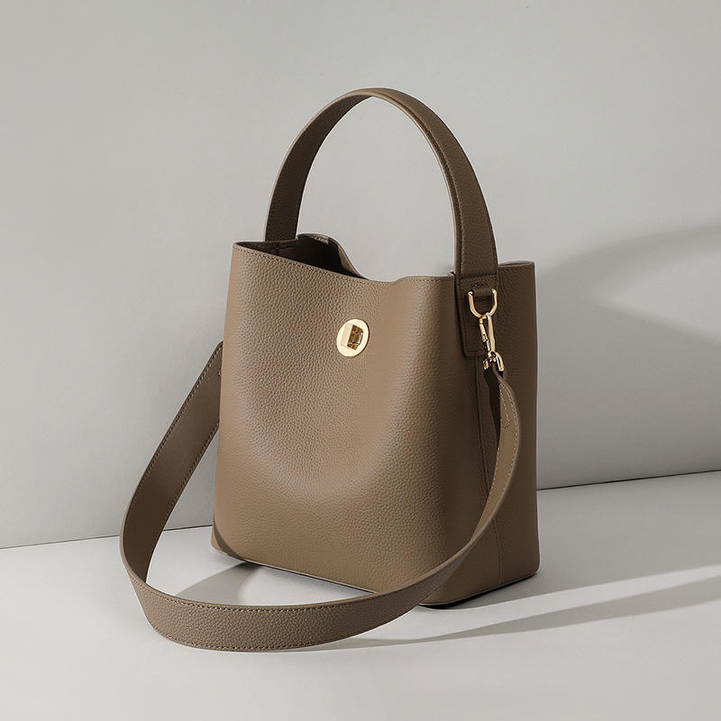 Genuine Leather Bucket Bag Women Large Capacity Waterproof Shoulder Handbag Fashion Minimalist Soft All Seasons 21.5X22.5X13CM