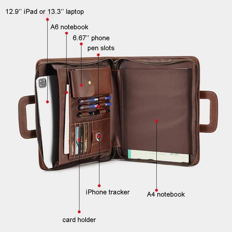 Genuine Leather Business Portfolio Bag File Folder A4 Document Folder Binder With Card Holder Custom Top Quality LP-0294