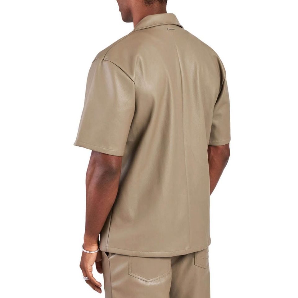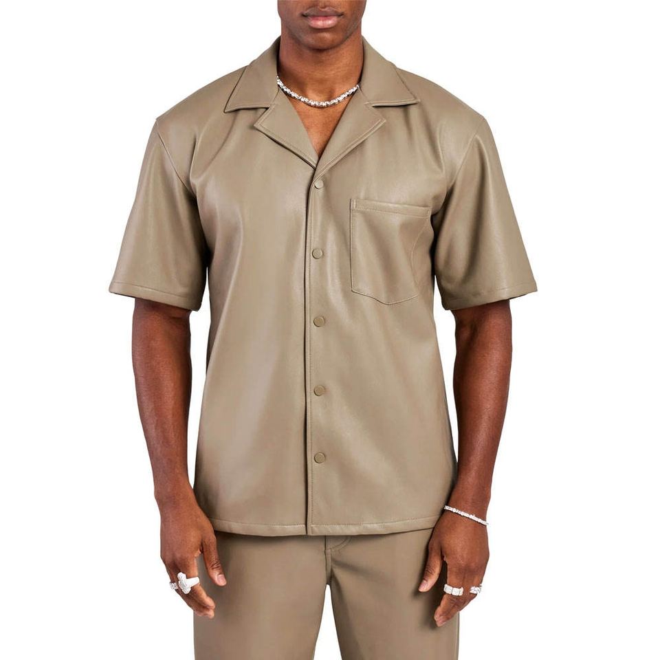 Genuine Leather Button Up Shirt For Men Casual Wear Winter Fashion Solid Color Stand Collar Premium Men’s Shirts Wholesale Price