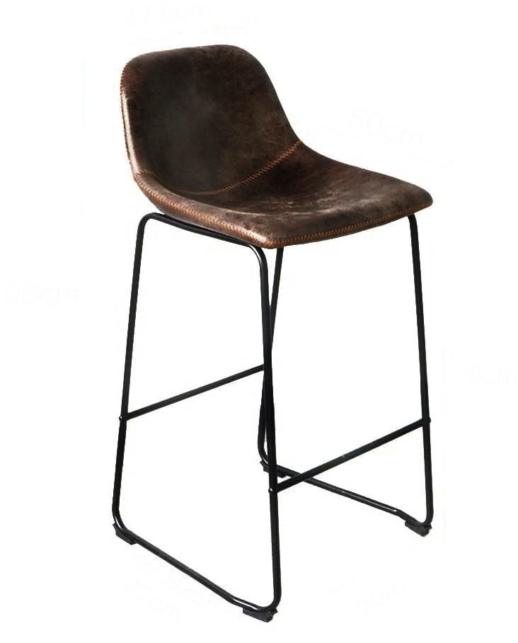 Genuine Leather Counter Height Bar Chair, Modern Style Upholstery with Metal Legs and Backrest Armless Bar Chairs