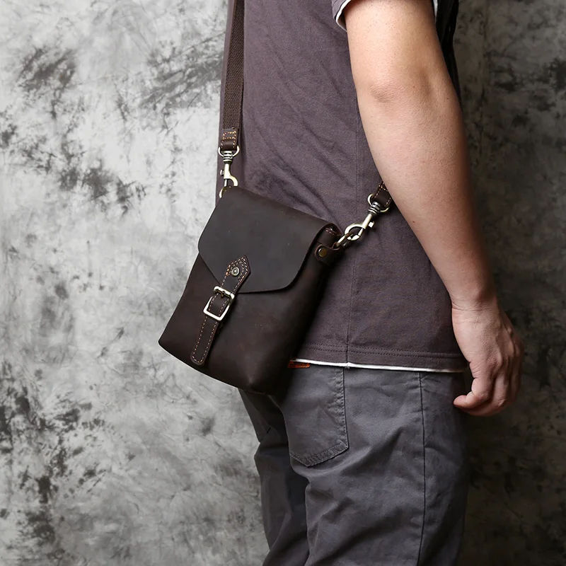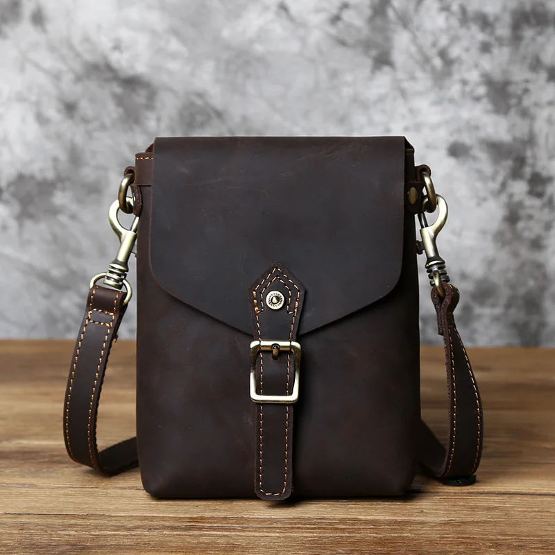 Genuine Leather Crossbody Bag Unisex Vintage Style Eco-Friendly Reusable Portable Large Capacity Zipper High Quality Morgans