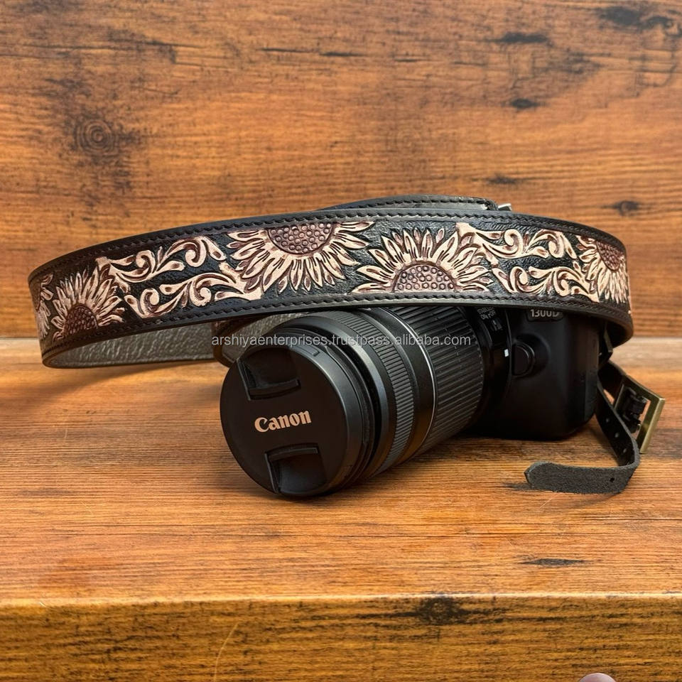 Hand Tooled Leather Camera Crossbody Bag Strap