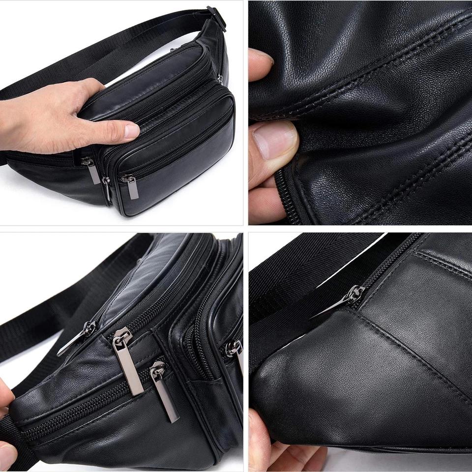 Genuine Leather Fanny Pack Crossbody Multi-Pouches Belt Bag Travel Waist Purse