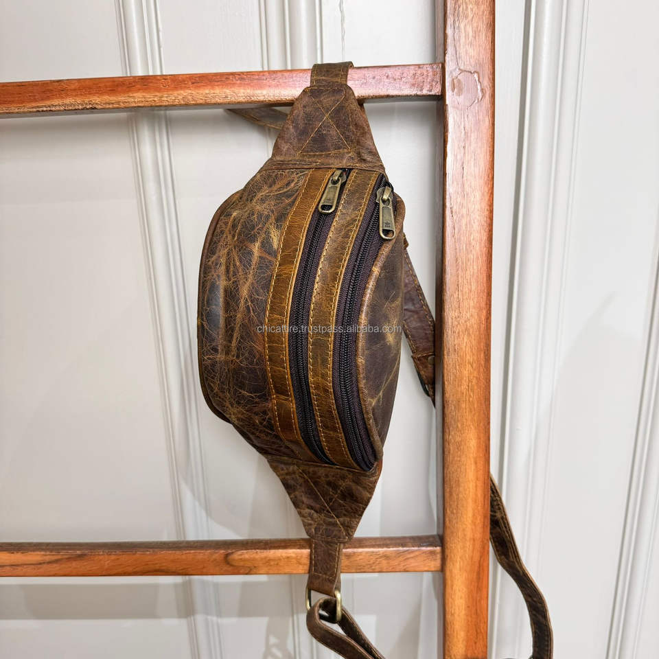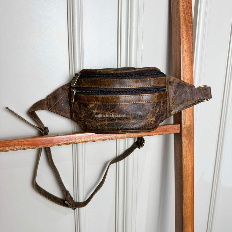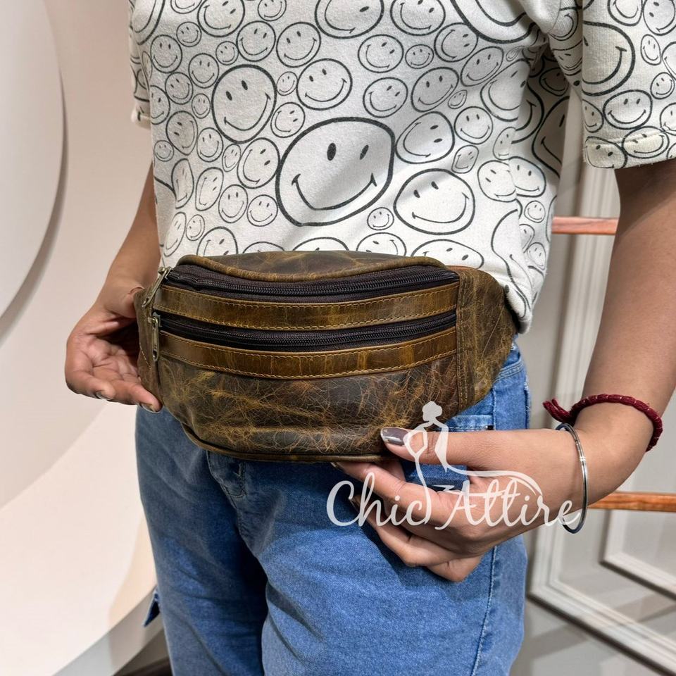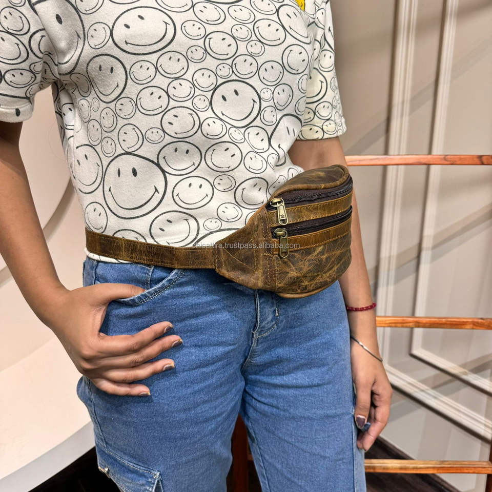 Genuine Leather Fanny Pack Well Made Durable Leather Waist Bag with Zipper Pocket Multifunctional Traveling Running Waist Pouch