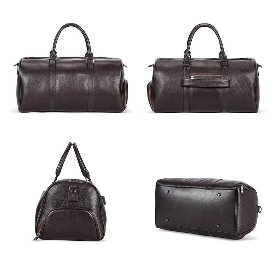 Genuine Leather Large Luggage Capacity Sports Gym Duffel Bag | Custom Pu Leather Waterproof Travel Zipper Closure High Quality