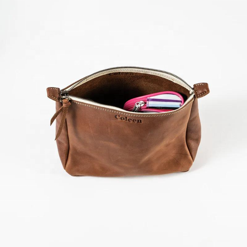 Genuine Leather Makeup Bag, Toiletry Kit for Men and Women, Real Leather Cosmetic Bag Personalized Cosmetic Pouch Organizer