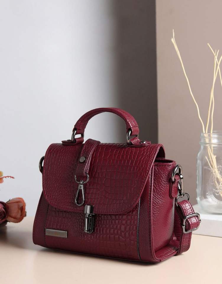 Genuine Leather Maroon Classic Satchel Office Work Shoulder Bag Elegant Handmade Detachable Strap 3L Capacity