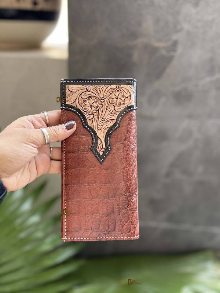 Genuine Leather Men's Long Wallet Unique Design Hand Tooled Leather Hot Sale Fashion Stylish Wallet Cash Holder Gift for Him