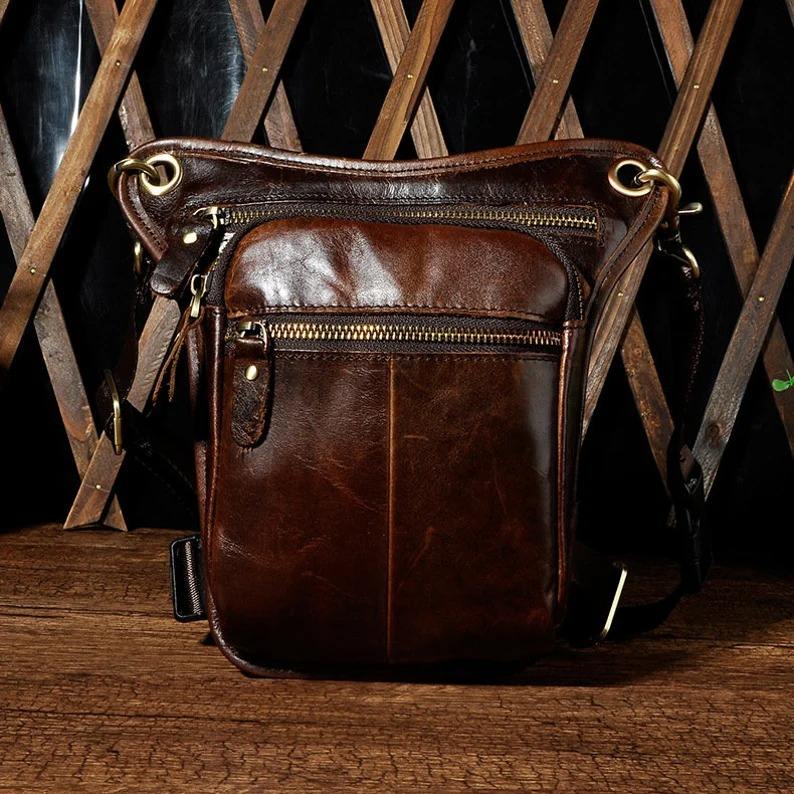Genuine Leather Men's Waist Bag Fanny Pack Belt Pouch with Zipper Closure LWB-0073 Money Belt Sling