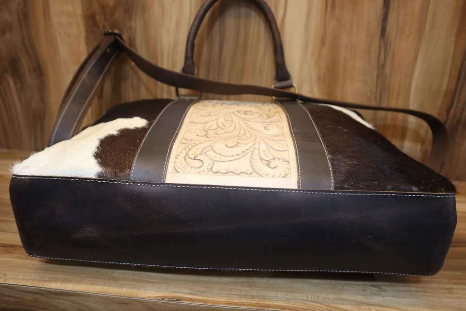 Product:Hand Tooled Hair On Leather Messenger Bag