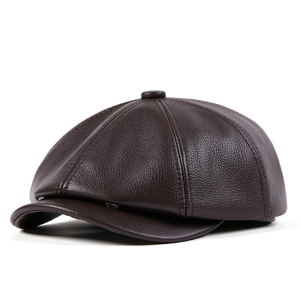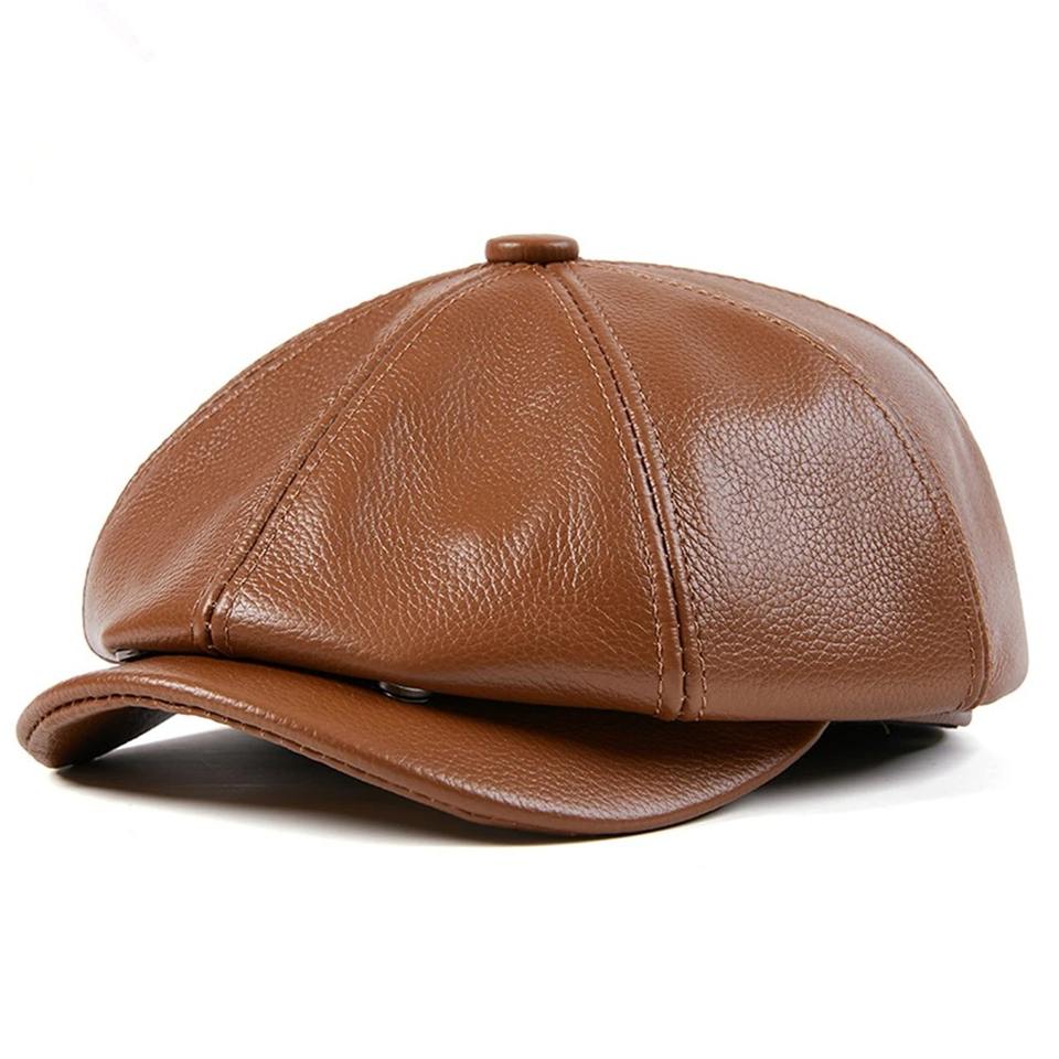 Genuine Leather Newsboy Cap Unisex High Quality Octagonal Hat Four Seasons Adjustable Beret Real Cowskin Flat Cap