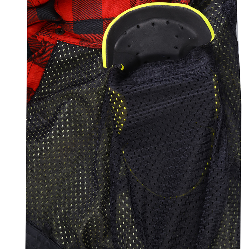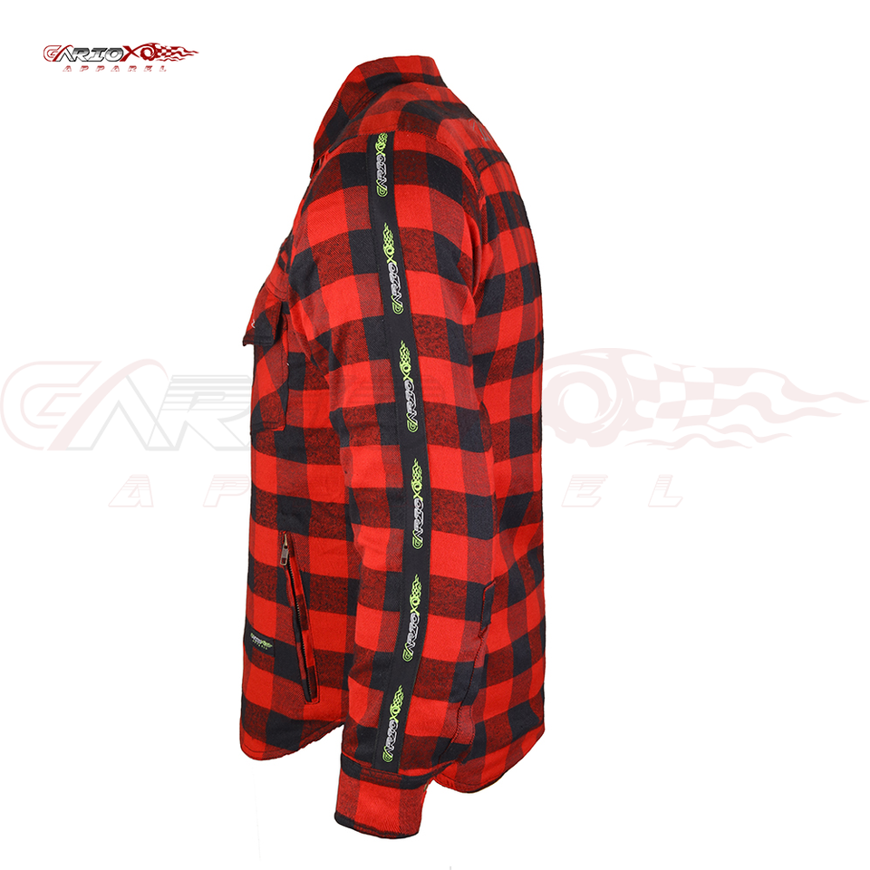 Anti-Uv, Breathable, Plus Size, CE-approved elbow protection, CE-approved shoulder protection, CE-approved spine protection, Aramid (Kevlar) fabric reinforcement, brass zippers, Brass snap buttons, Mesh inner lining, Breathable fabric, Moisture-wicking material, Abrasion resistance, Road rash protection, Flexible design for comfort, Reinforced stitching, Stylish flannel pattern, Lightweight construction, Dual concealed carry pockets, Snap-secured cuffs, Zippered underarm vents, Stretch panels for mobility, Durable outer shell, Adjustable fit, Collar with button closure, Long sleeve design, Multiple external pockets, Hidden internal pockets, Snap-down collar for wind resistance, Protective back pocket for armor insert, Sun-fade resistance, Pre-shrunk fabric, Logo label and branding detailsFeature