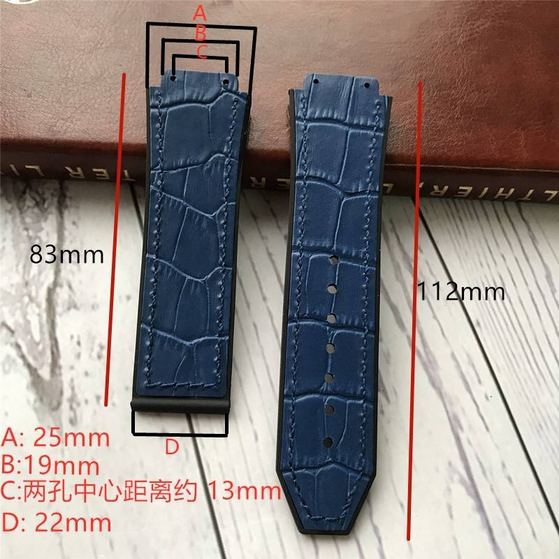 Genuine Leather Rubber Watch Strap Large 22mm Fusion Convex Black Breathable Soft Adjustable Replacement for Hub Watch