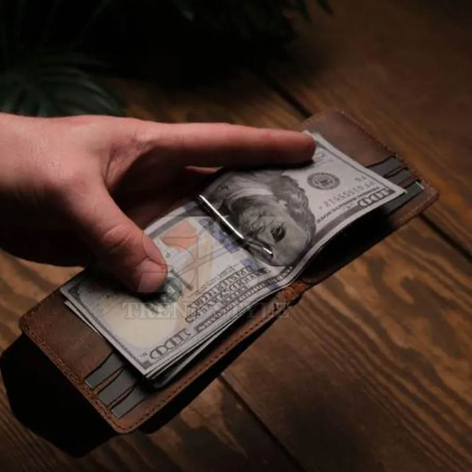 Genuine Leather Single Color Money Clip Slim Minimalist Wallet For Men Wholesale Price Leather Single Shade Money Clip