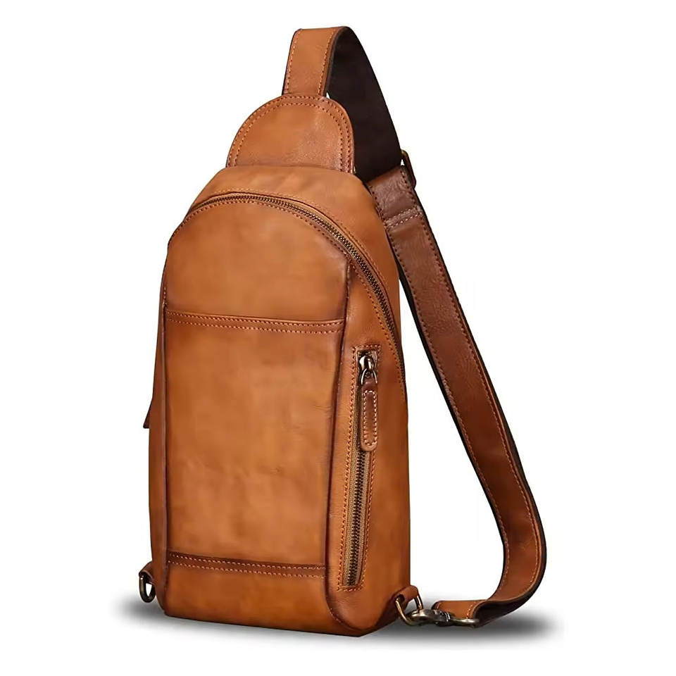 Genuine Leather Sling Backpack Men Multi-pocket Bag Chest Soft Genuine Leather Travel Crossbody Bag Leather Pakistan