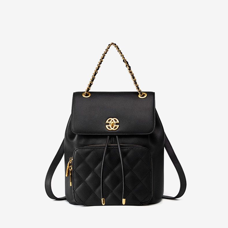 Product Name:Black Leather Quilted Backpacks Twist Lock Chain Backpack Handbags