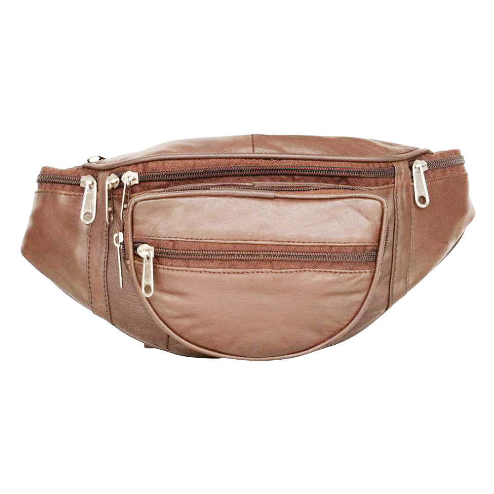 Genuine Leather Tan Leather Chest Bag for Men Waist Bag Sports Waist Bag Double Zipper Money Phone Belt