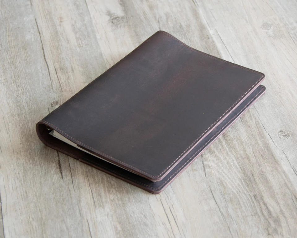 Genuine Leather Three Ring Binder with Stitching Sewing Bindings