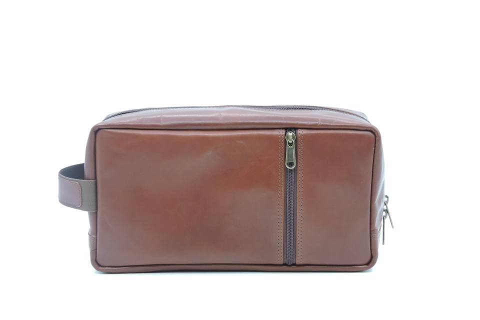 Genuine Leather Toiletry Bag Handmade Travel Dopp Kit for Men and Women Durable Wash Bag with Zipper Compartments For Wholesale