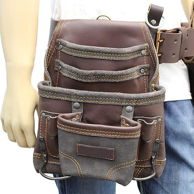 Genuine Leather Tool Belt with Storage Pouches Professional Work Utility Heavy Duty Industrial Leather Tool Belt