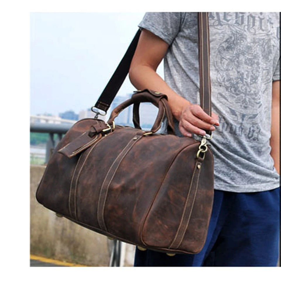 Genuine Leather Travel Bags Luxury Men Large Capacity Portable Male Shoulder Bags Brand Vintage Travel Duffle