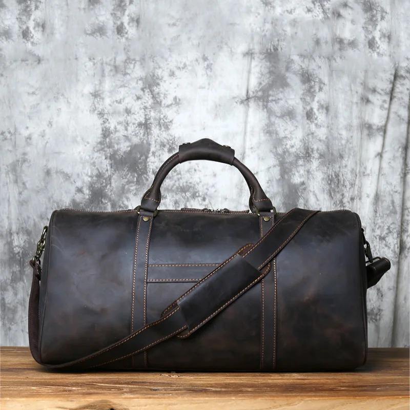Genuine Leather Unisex Travel Weekender Overnight Duffel Bag with Reusable Zipper Closure Large Capacity for Gym Sports